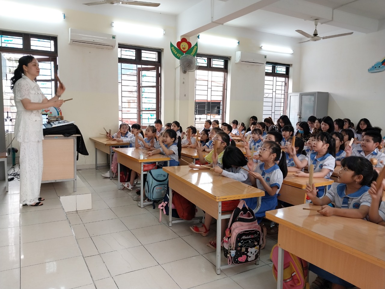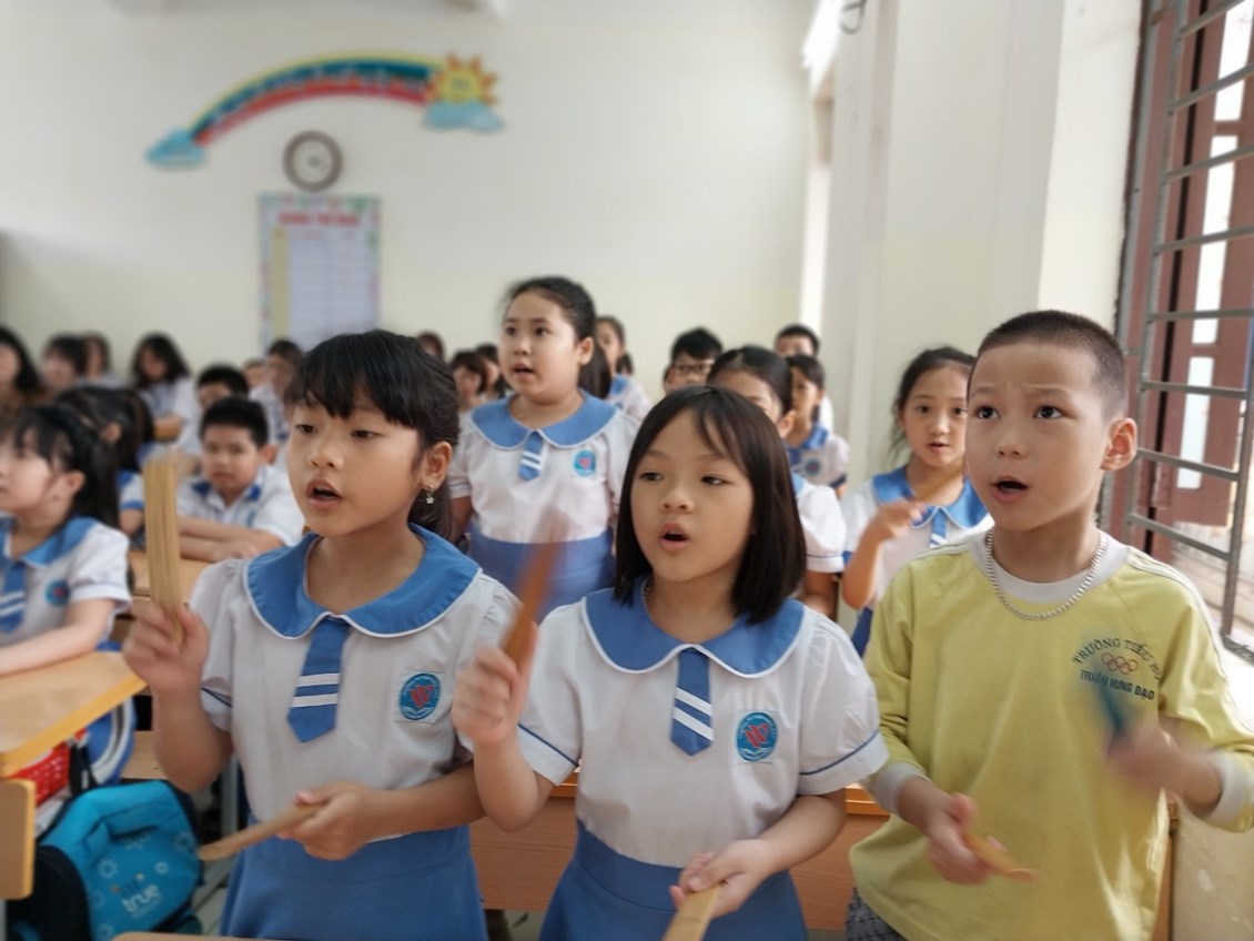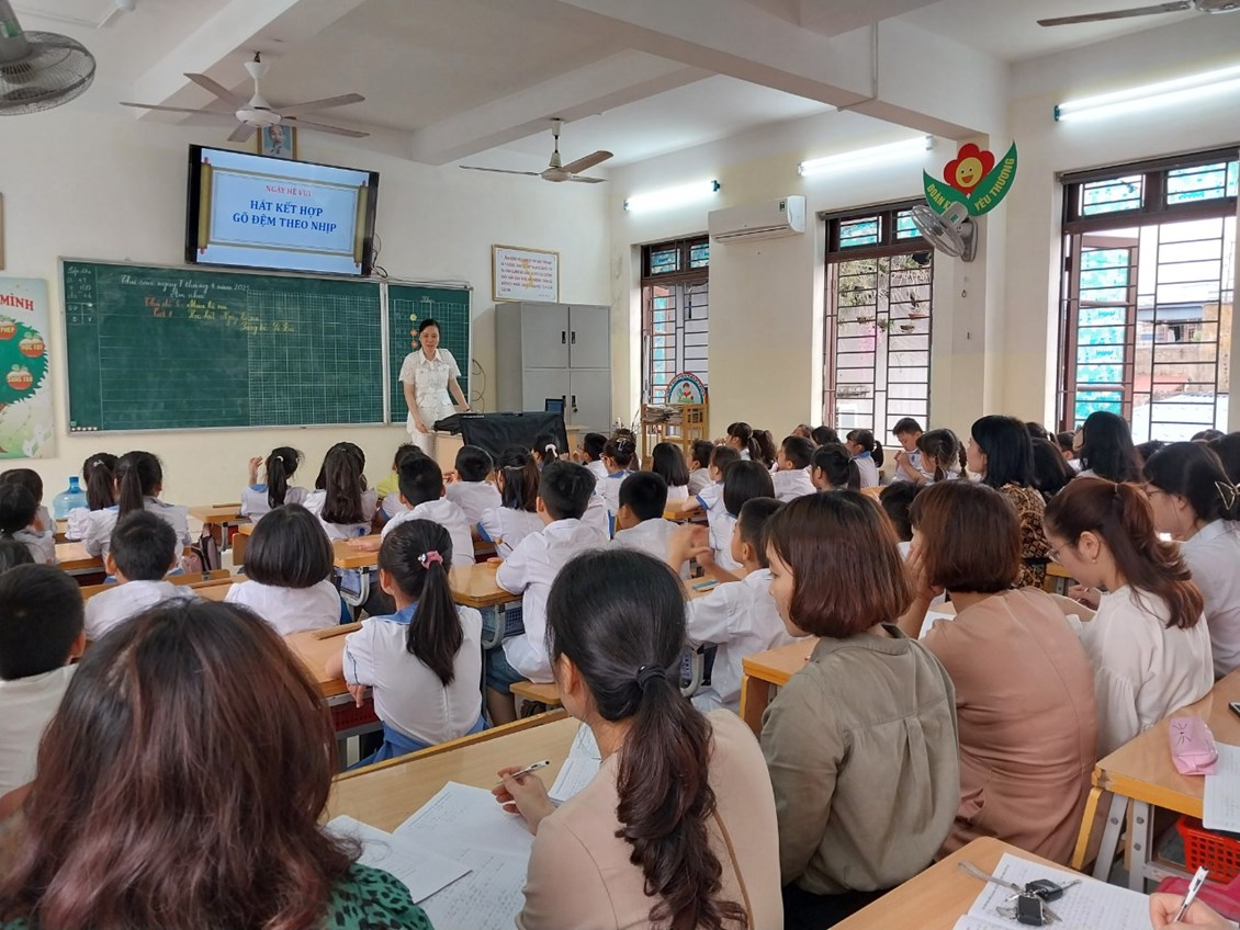 Cô giáo Mai Huyền Trang cùng các em học sinh lớp 2A4 đã thể hiện thành công chuyên đề qua tiết Âm nhạc: Chủ đề 8: Tiết 1: Học hát: Ngày hè vui. Sáng tác: Lê Bùi.