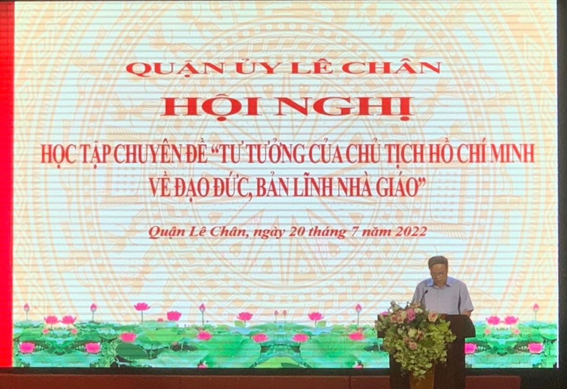 Thực hiện công văn số 1151- CV/ QU của quận ủy Lê Chân, chiều ngày 20/7/2022 trường tiểu học Trần Hưng Đạo đã tham dự Hội nghị học tập chuyên đề “Tư tưởng của Chủ tịch Hồ Chí Minh về đạo đức, bản lĩnh nhà giáo” do Ban Thường vụ Quận ủy Lê Chân tổ chức tại trung tâm Văn hóa Thông tin và thể thao quận