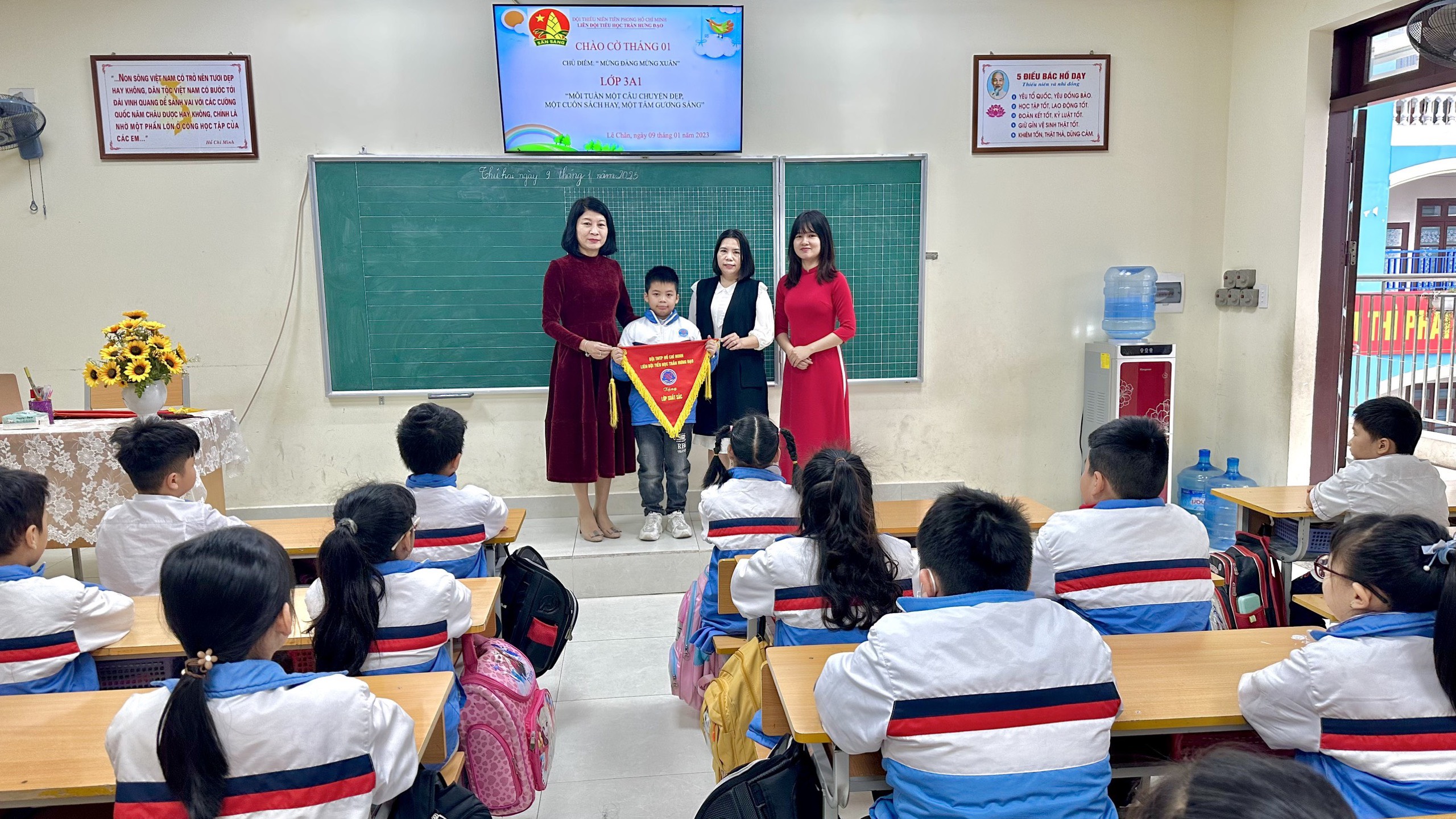 Đến dự và trao cờ cho các tập thể xuất sắc có Nhà giáo Nguyễn Thị Kim Viên - Bí thư chi bộ, Hiệu trưởng nhà trường và các cô trong BGH. Xin chúc mừng các tập thể lớp: 1A5, 2A5, 3A1, 4A2, 5A8 đã đạt lớp xuất sắc của tháng 12 💐💐💐 Chúc các tập thể lớp năm mới đạt thêm nhiều thành tích tốt hơn nữa.🎖🎖🎖