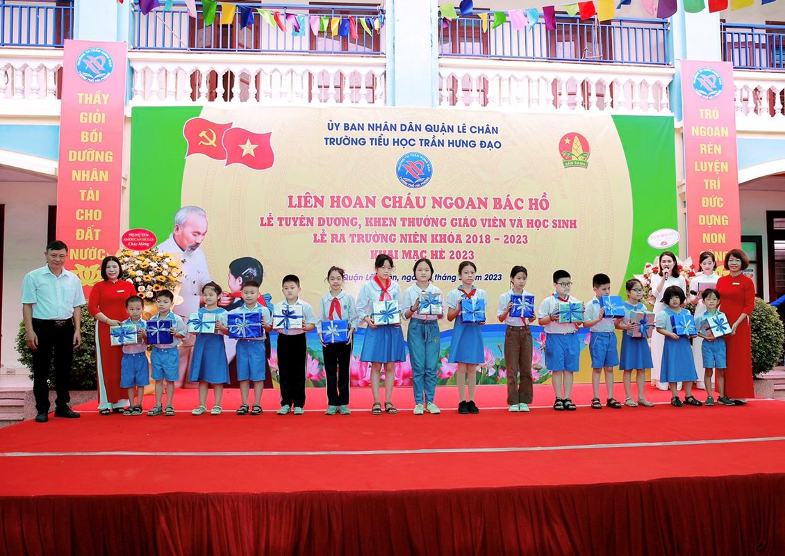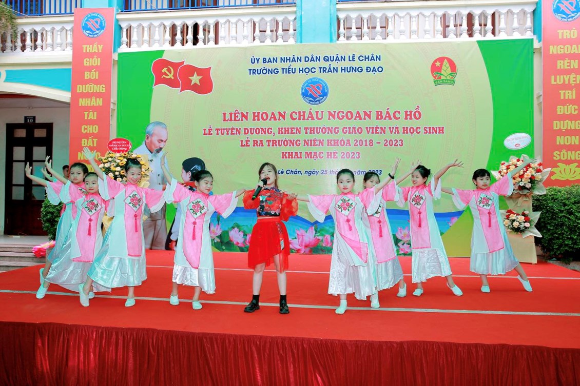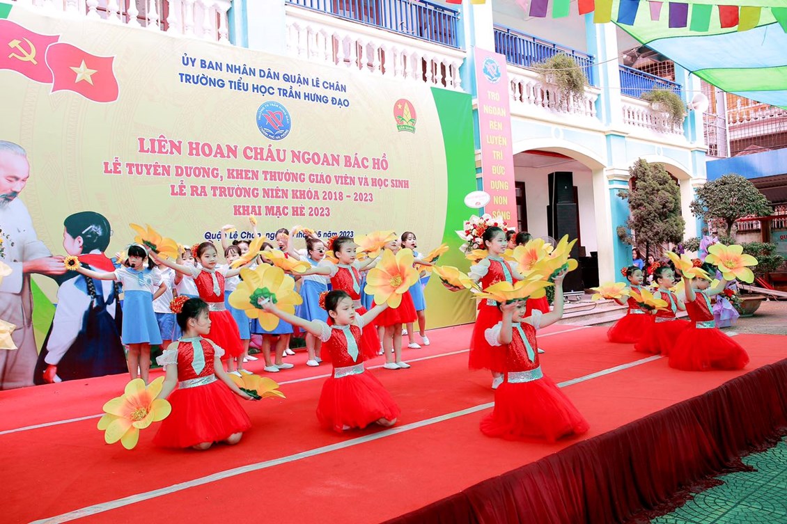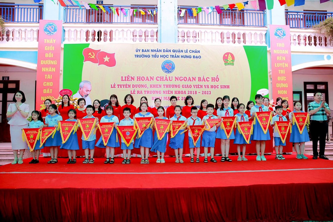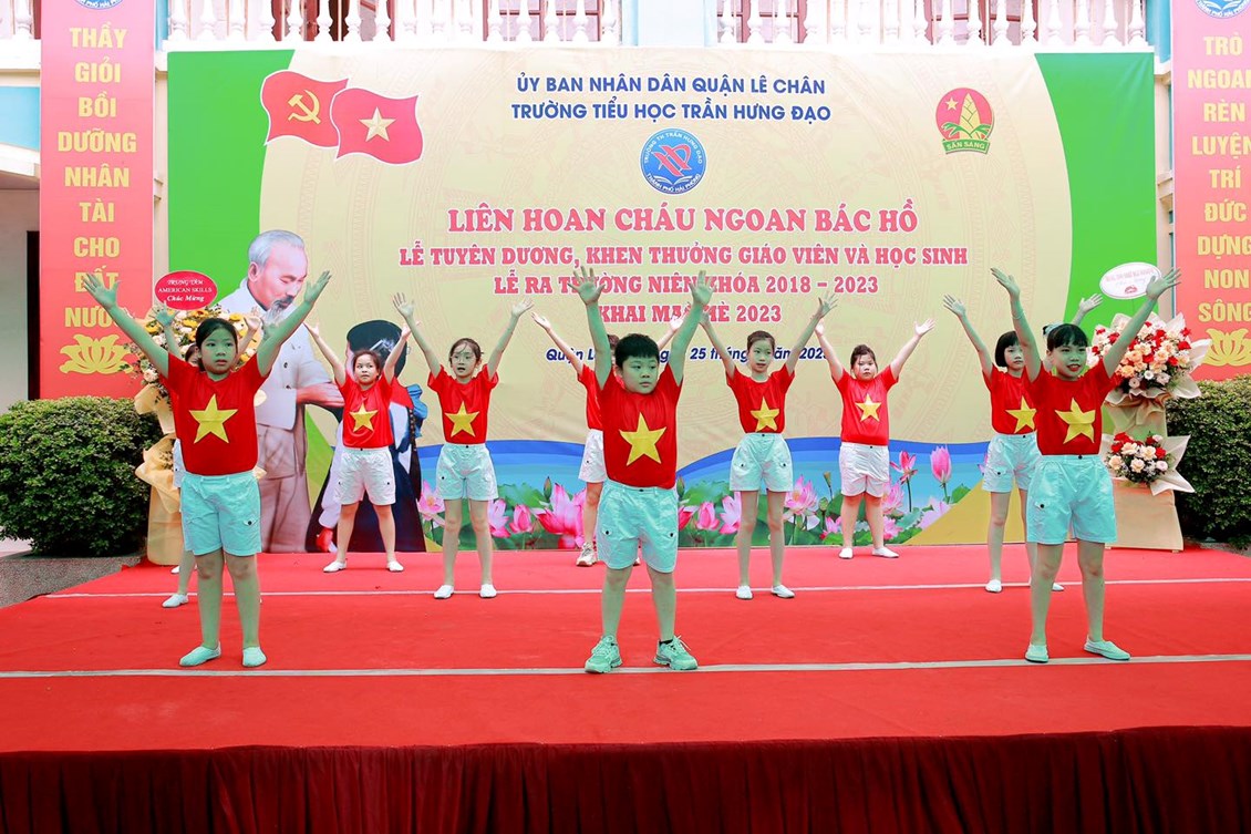 Hòa chung trong không khí tưng bừng Kỷ niệm các ngày lễ lớn trong tháng 5 lịch sử, thầy và trò trường TH Trần Hưng Đạo long trọng tổ chức “LIÊN HOAN CHÁU NGOAN BÁC HỒ - BIỂU DƯƠNG GIÁO VIÊN GIỎI, HỌC SINH GIỎI, THIẾU NHI VƯỢT KHÓ TRONG HỌC TẬP – LỄ RA TRƯỜNG CHO HỌC SINH LỚP 5 NIÊN KHOÁ 2018 – 2023 VÀ KHAI MẠC HÈ 2023”
