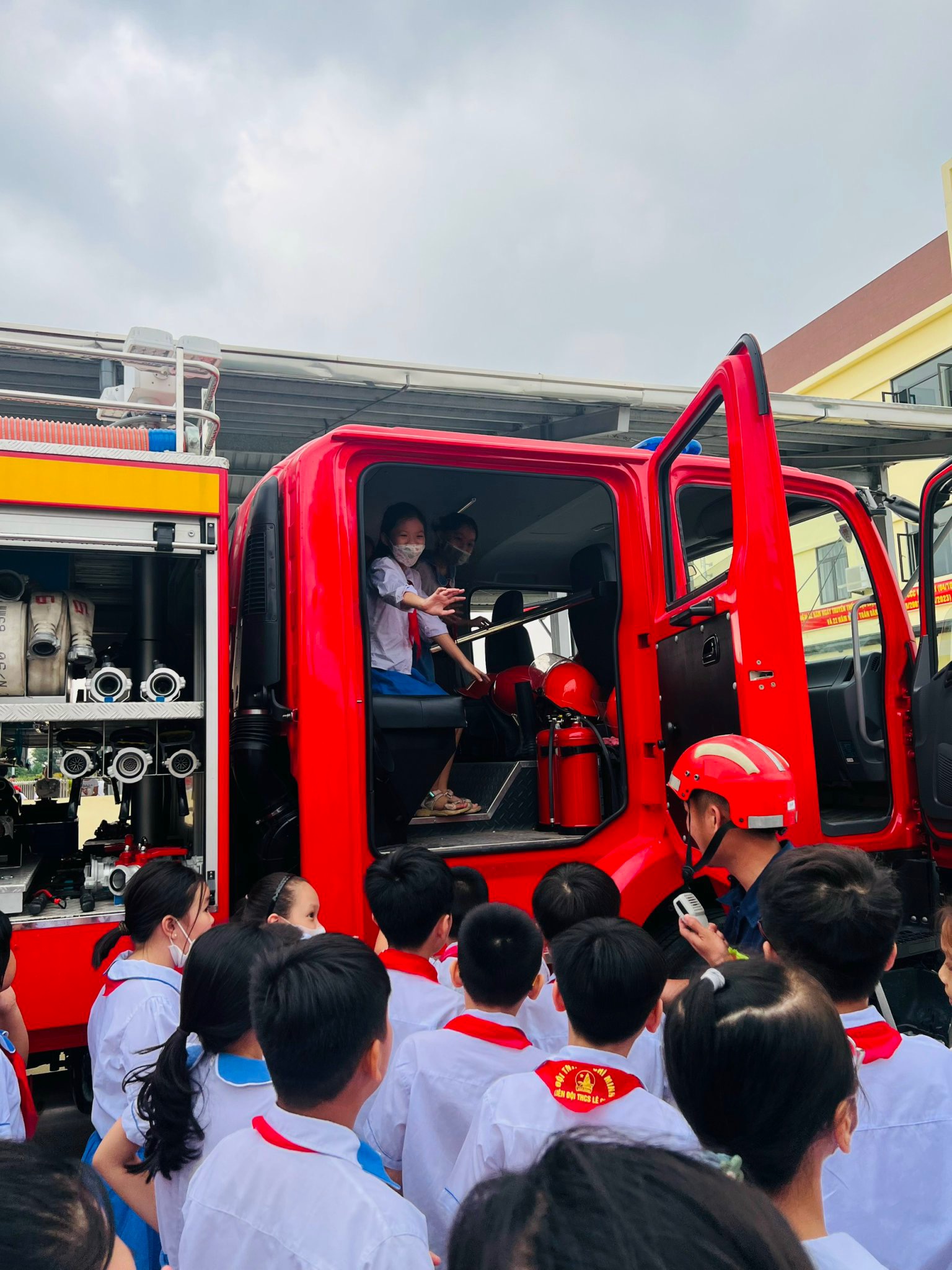 🧯Thực hiện nhiệm vụ của UBND quận, Phòng Giáo dục và Đào tạo quận Lê Chân, ngày 7/10/2023, 30 học sinh lớp 5A3 đại diện cho học sinh trường Tiểu học Trần Hưng Đạo tham gia trải nghiệm, thực hành chữa cháy, cứu nạn cứu hộ tại trụ sở Đội chữa cháy và cứu nạn, cứu hộ khu vực Dương Kinh - Phòng PC07 CATP.