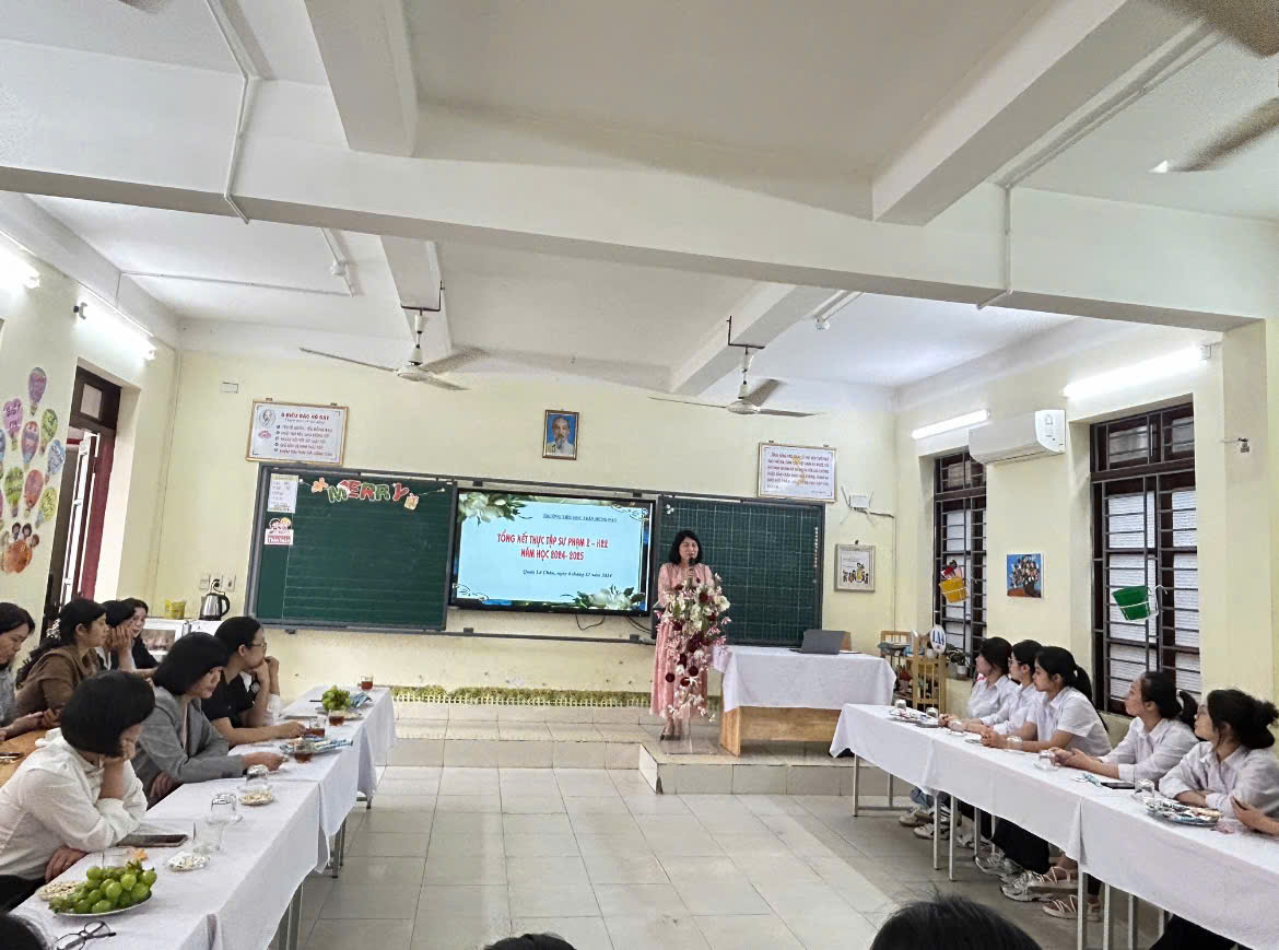 🌺Trong buổi tổng kết, cô Nguyễn Thị Kim Viên- Trưởng ban chỉ đạo đã có đôi lời chia sẻ về quá trình thực tập của các em tại nhà trường đồng thời ghi nhận sự cố gắng, nỗ lực và tinh thần trách nhiệm của các em và chúc các em trên con đường sự nghiệp trồng người sắp tới sẽ luôn nhiệt huyết với nghề, yêu trẻ và giành được nhiều thành công.